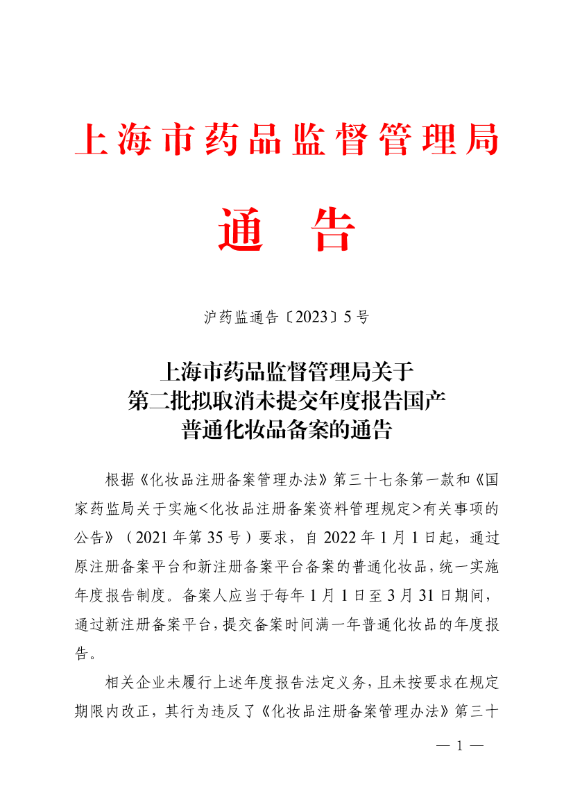 1.拟取消未提交年度报告国产普通化妆品备案产品清单(第二批)