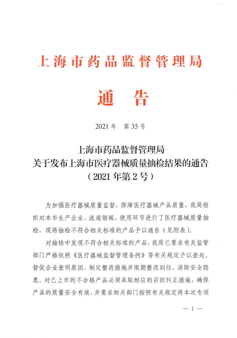 AG真人关于发布上海市医疗器械质量抽检结果的通告(2021年第2号)