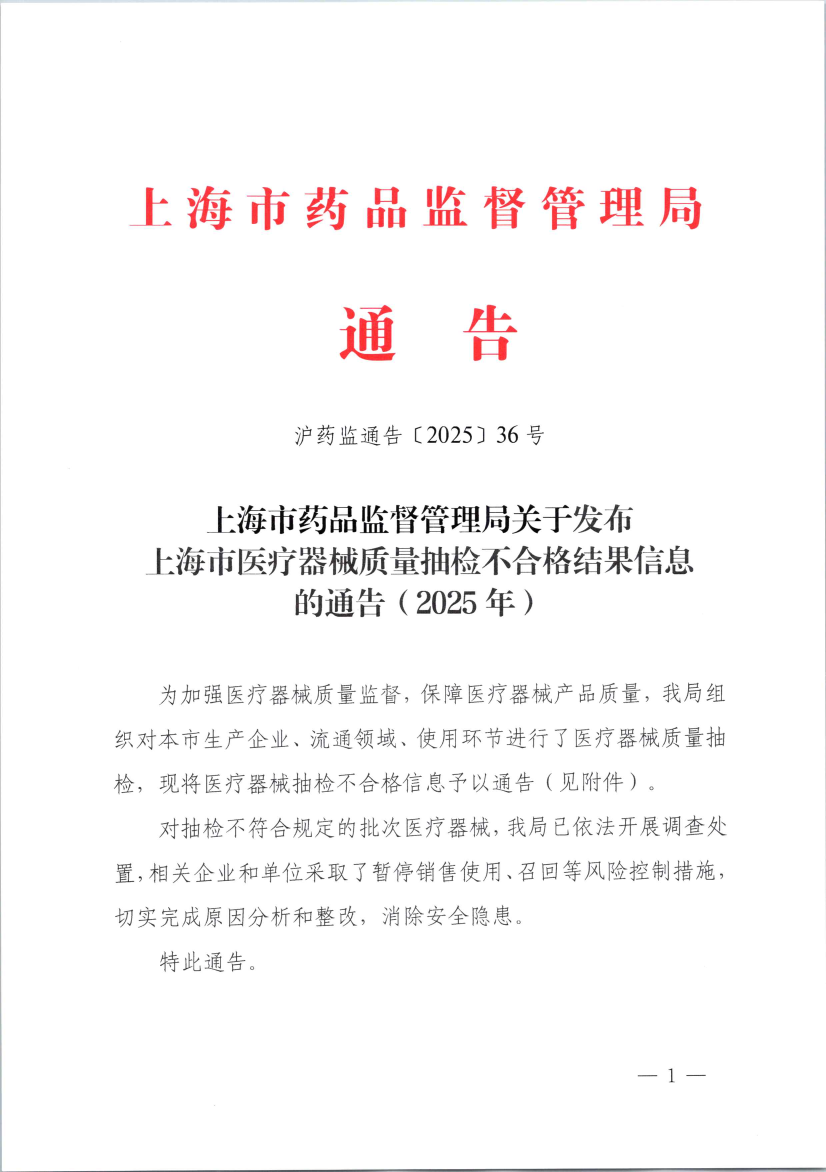 沪药监通告〔2025〕36号