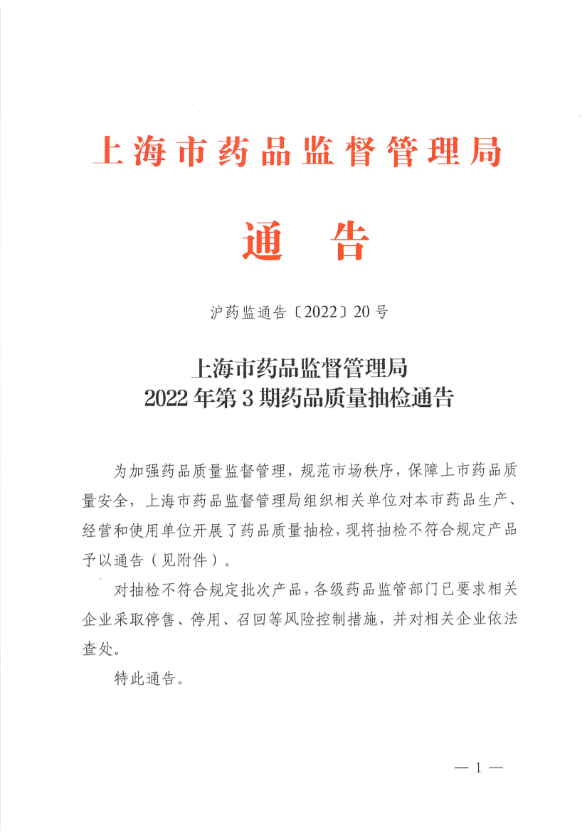 为加强药品质量监督管理,规范市场秩序,保障上市药品质量安全,AG真人组织相关单位对本市药品生产、经营和使用单位开展了药品质量抽检,现将抽检不符合规定产品予以通告(见附件)。