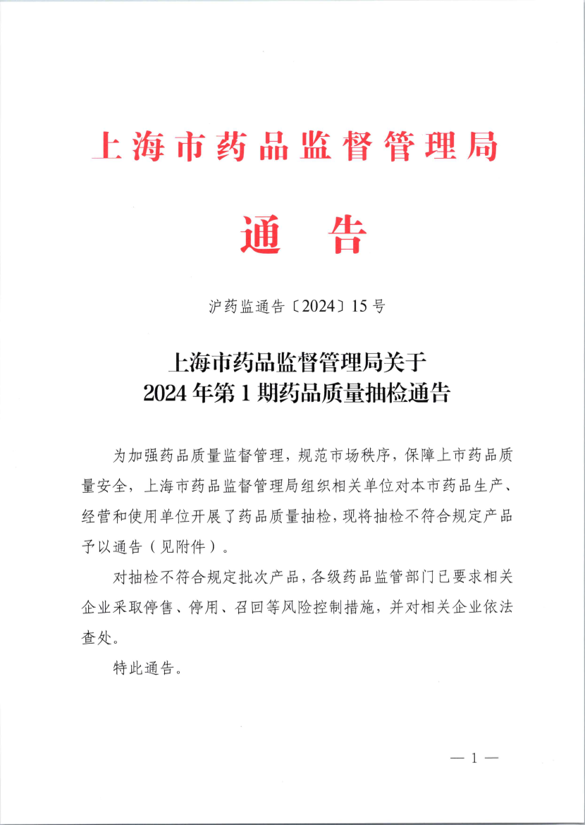 沪药监通告〔2024〕15号